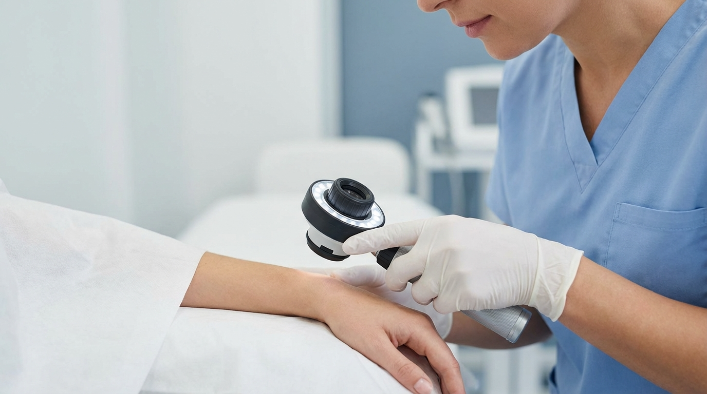 • 3. Dermoscopy (Mole Mapping): Using a specialized handheld microscope, the dermatoscope, your dermatologist examines suspicious moles at high magnification. This reveals subsurface structures invisible to the naked eye, aiding in precise diagnosis.